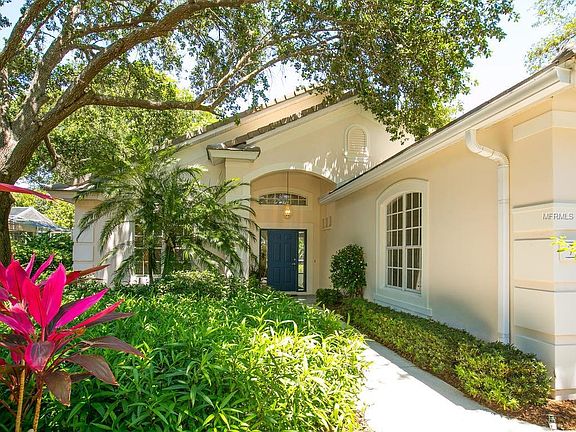 Move right in! This lush, tropical home is being sold furnished*. Freshly painted exterior. Light & bright with 3 bedrooms & 2 bathrooms, this house is perfect for Florida living with high ceilings inside and newly re-screened generous lanai with good undercover space outside. Nestled among the luxuriant foliage, this home is on a cul-de-sac amidst the peace and quiet of the lawn maintenance-free Virginia Water neighborhood of gated University Park Country Club. The kitchen boasts fresh, white cabinetry with quartz counters and travertine flooring, even in the breakfast room. Rotunda-style entry creates a striking introduction to the open great room floor plan. Master bathroom has marble flooring, private water closet, dual sinks with separate shower and garden tub. Large, just painted, 2-car attached garage has plenty of space for a work area and contains the tankless gas hot water system. Interior laundry has closet, sink, and brand new washer & dryer. Cul-de-Sac island separates your home from others across the street. Lap-length heated community pool and spa around the corner. With 22 miles of pathways for walking, jogging, or biking among the wildlife habitat, restaurants, golf (27 holes), tennis (lighted courts), fitness center, croquet and other games, along with shopping, beaches, UTC Mall, downtown Sarasota, airports and I-75 within easy reach, this is the place to be on the Gulf Coast!