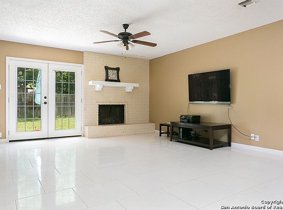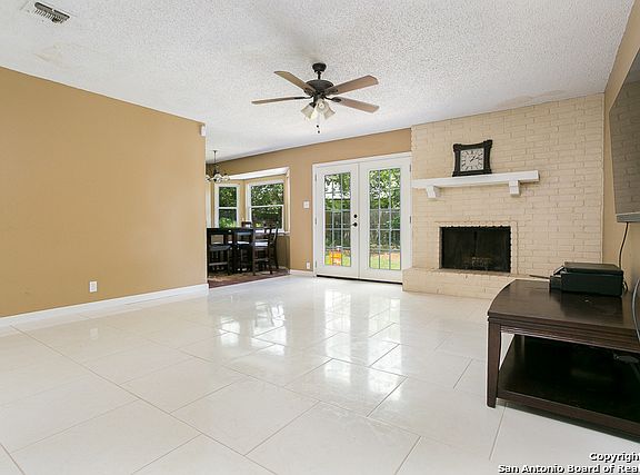Incredible value in this home with recent high end upgrades you must see! Brand new tile flooring throughout, granite countertops, beautiful cabinetry in kitchen with stainless steel appliances, new windows and french doors to patio and spacious backyard. Utility room with new cabinets and pantry storage. The large Owner's retreat has a great walk in closet, and beautiful tile work in the bathroom. *New roof completed in April* Convenient location, AFB, 1604, UTSA, parks, schools!