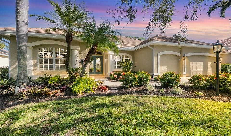 Spotless, tranquil and secure in prime location! Beautifully updated, hurricane-ready 3-bedroom, 2-bath + den pool home in the highly sought-after gated community of Treymore in Palm Aire. Perfectly situated just 20 minutes from everything Sarasota and Bradenton have to offer, this home combines elegance, convenience, and peace of mind. A gated entrance, winding streets lined with mature trees, and lush tropical landscaping welcome you home. Step inside to an open floor plan that boasts high ceilings, natural light, and disappearing corner sliders that seamlessly blend indoor and outdoor living. The centerpiece of the home is a stunning private lanai, complete with an awning, a serene heated pool, and ample space for relaxation or entertaining. The spacious kitchen is a chef’s delight featuring custom wood cabinetry with elegant glass-fronts, stainless appliances, River Valley granite countertops and breakfast bar, all overlooking the tranquil backyard through a captivating aquarium window. For peace of mind, this home features 2023 tile roof, whole-house generator, motorized hurricane screens in lanai and front door, and Lexan shutters for the rest. Located within 6 miles of Sarasota International Airport and University Town Center which includes Nathan Benderson Park, MoteSEA Aquarium, Whole Foods, Trader Joe’s, and The Mall - an unparalleled shopping, dining, and entertainment destination. You'll also be just 9 miles from the vibrant arts and culture of downtown Sarasota, downtown Bradenton, and award-winning beaches. A fabulous Florida lifestyle! 2024 water heater and whole-house water filter, 2023 exterior paint, 2017 AC system, 2016 pool heat pump, large interior storage closet, 3-car garage, above flood plain: zone X.