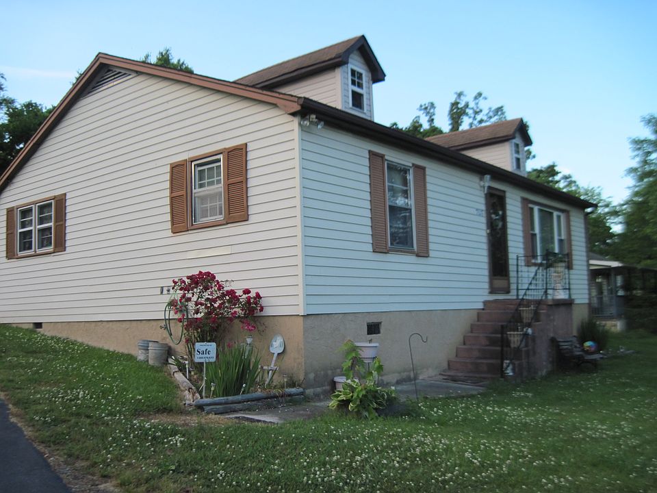 BIG GARAGE WITH WOOD STOVE AND 100 AMP ELEC SERVICE 40 x 12 living dining front room WITH WOODSTOVE great patio in rear with dogwood trees NO REALTORS GREAT LOCATION CLOSE TO PARKS AND SHOPPING