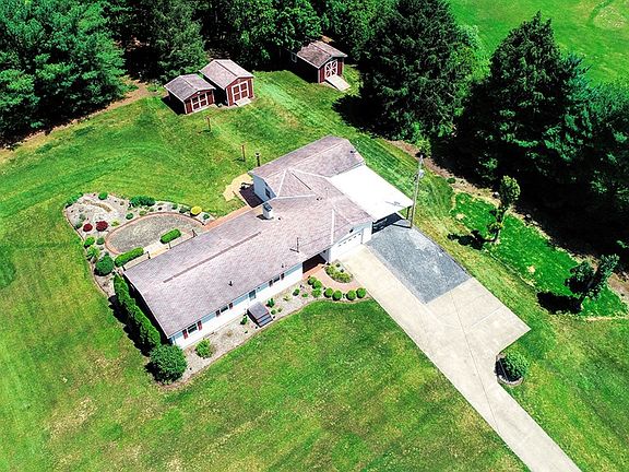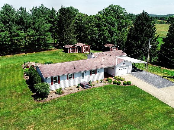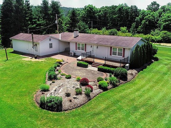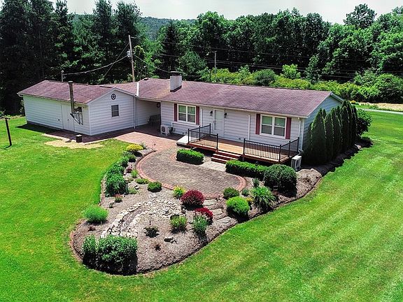 Peaceful country setting in beautiful Trough Creek Valley. Beautifully landscaped with 9x 22 wooden deck overlooks back yare and nicely hardscaped brick patio are with pond less waterfall. Well maintained 2 bedroom 1 bath home has full mostly finished basement. On a gently sloping 2 acre lot bordering township road. Multifuels heating. Breezeway between home and Garage. 1 car garage has a carport attached and also a very nice heated wood working shop attached. Lots of storage in 3 detached sheds. Very near Trough Creek State Park, Raystown Resort and large tract of State Forest Land.