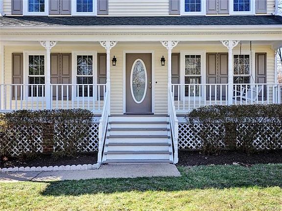 Move in ready! Low maintenance vinyl siding and a stunning covered country front porch (complete with porch swing) welcome you! Double width paved drive, privacy fenced in rear lot, 2 year old central AC. Inside boasts fresh neutral paint throughout, wood floors on first floor and NEW carpet on 2nd floor. Spacious family room with gas fireplace, ceiling fan, wainscoting, and French doors to the rear deck. Awesome kitchen with tile floor, solid Corian counters, classic white cabinetry and sunny eat-in nook. Formal dining room with chair rail and crown molding. Laundry room and powder room complete the 1st floor. Popular rear entry stairs to 2nd floor. Master suite with walk in closet, new paint and carpet, and private/updated full bath. 2 more bedrooms with ceiling fans and nice closets and an updated full hall bath complete the 2nd floor. Amazing level rear lot with privacy fence, garden area, play area, garden/tool shed, brick walkway to mud/laundry room and great rear deck for entertaining to French doors in family room. This home is a must see!