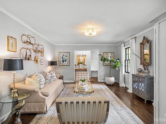 Rare renovated 3 bedroom 2 bath brick ranch in beautiful Huntingtowne Farms! Hard to find open floorplan with large renovated kitchen opening to family room space. Kitchen with grey cabinets, marble countertops, to the ceiling subway tile, large farmhouse double sink, stainless appliances and huge kitchen island. Family room with double atrium doors, built in bookshelf and brick fireplace. Dining Room is completely open to kitchen and living room making this home perfect for entertaining. Primary suite with renovated primary bath with marble top vanity, subway tile in shower and frameless shower door. Hall bath has also been updated with new vanity with marble countertop and wide plank tile floor. Hardwood floors and updated stylish light fixtures throughout. Large 2 car carport with separate storage area. Patio overlooks lovely landscaped private fenced backyard. Just a short walk to the Sugar Creek Greenway and the South Park Swim and Tennis Club!