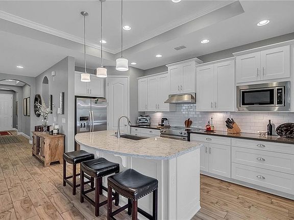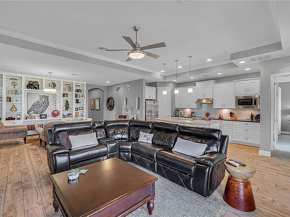 • Interior Features: Ceiling Fans(s), High Ceiling(s), Living Room/Dining Room Combo, Master Bedroom Downstairs, Split Bedroom, Crown Molding, Walk-In Closet(s), Window Treatments, Open Floorplan, Built in Features, Stone Counters, Tray Ceiling(s), In Wall Pest System