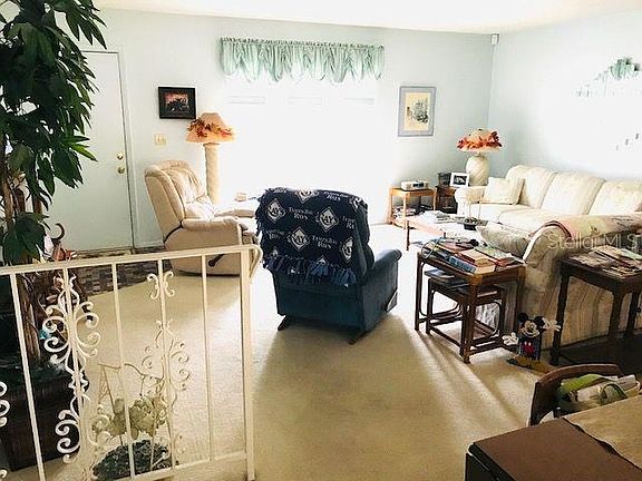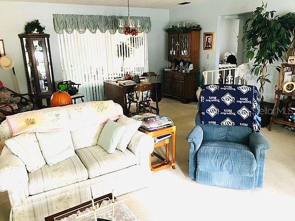EXPANSIVE GULFSTREAM MODEL IN POPULAR FAMILY COMMUNITY: THIS BEAUTIFULLY MAINTAINED 2/2/2 HAS OVER 1700 SQ FT of LA; DRAMATICALLY OPEN FLOOR PLAN WITH LIVING ROOM/DINING ROOM COMBINATION ADJOINING COZY FAMILY ROOM WITH STONE FIREPLACE & CATHEDRAL CEILINGS; KITCHEN WITH BAR, PANTRY & BREAKFAST ROOM; LARGE MASTER SUITE WITH WALK-IN CLOSET & FULL WRAP AROUND BATH WITH DUAL SINKS; 11X16 VINYL ENCLOSED CARPETED LANAI; WINDOW TREATMENTS & CEILING FANS GALORE; OVERSIZED 23X23 DOUBLE GARAGE; STORAGE SHED; CORNER LOT WITH SEPARATE CONCRETE DRIVEWAY FOR BOAT/RV PARKING; EASY WALK TO LAKE LISA PARK; HVAC NEW IN 2016; TIMBERLINE ROOF NEW IN 2003; WATER HEATER NEW IN 2019; NEW DISHWASHER IN 2019; NEW GARAGE DOOR IN 2004; NEW MICROWAVE IN 2018; WELL & SPRINKLERS; PRIDE OF OWNERSHIP SHOWS THROUGHOUT! FURNISHINGS AVAILABLE THROUGH SELLER