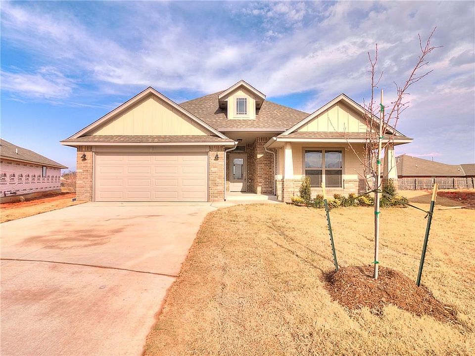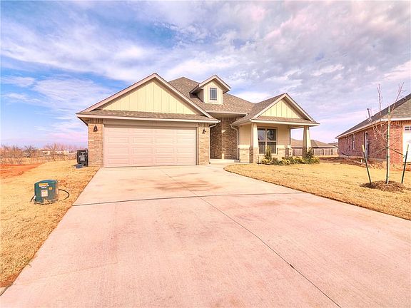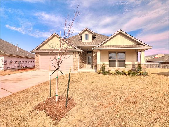 This home has 3 beds, 2 baths, and a 2 car garage. It features an open concept floor plan with a large kitchen island, quartz countertops in kitchen and bathrooms, subway tile backsplash, kitchen pantry, soft close cabinets, stainless steel appliances, full extension drawers, gas fireplace with stone ledger surround, bull nose corners, crown molding, designer lighting, raised double vanity in master bath, tiled shower, jetted soaker tub, spacious walk in closet, steel tub with tile surround in guest bath, over toilet storage in bathrooms, back covered patio, large covered front porch, home security system, garage door opener, energy efficiency features, located in Putnam City school district, and more. Ask us about our incentives for this home!