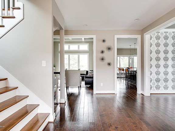 In the beautiful subdivision of Beech Spring Farm, this home offers custom designs and attention to detail throughout. Upon entering the foyer, the open floor plan allows for views in every direction. The dining room has wallpaper making the room both fun and elegant. The great room and kitchen stretch alongside the back of the home allowing an abundance of natural light. The great room features a beautiful stone fireplace, trayed ceilings, and built ins. Off the great room is the spacious kitchen with a large island for guests to gather around while the cook in your life is at work. The first-floor owner's suite is complete with an ensuite and spacious walk in closet. To complete the first floor living space there is a half bathroom and designated laundry room.