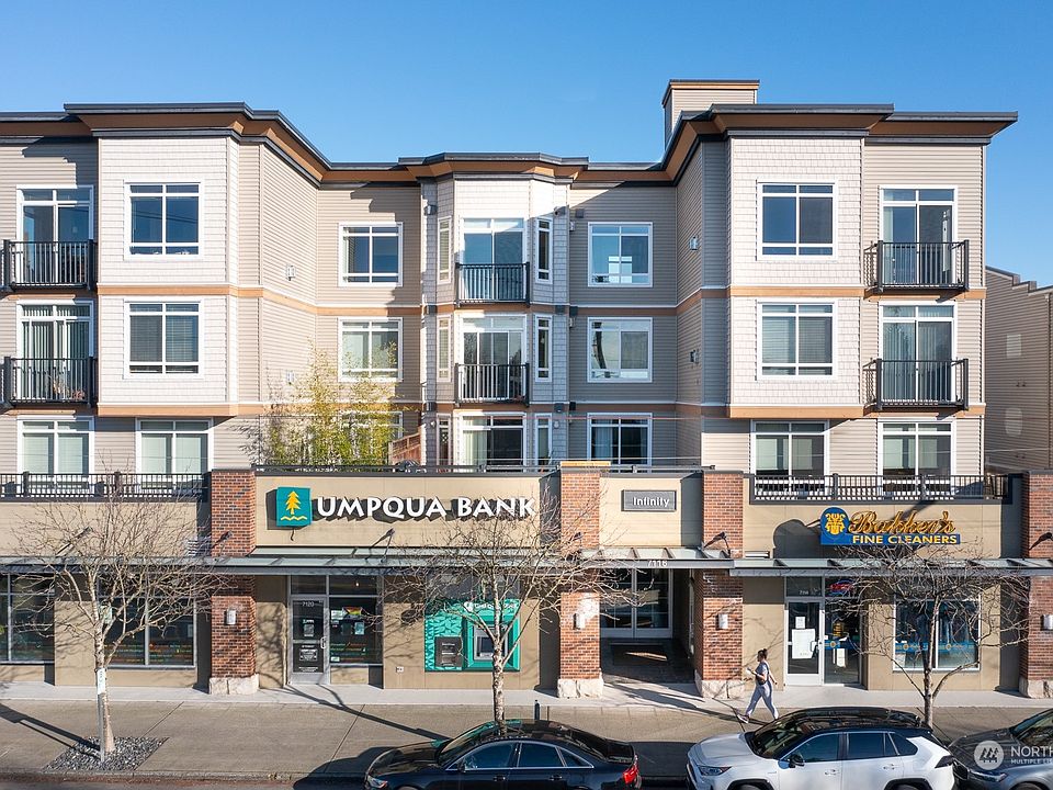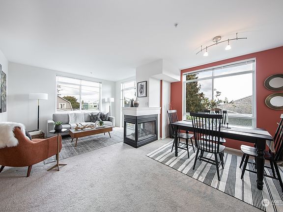 Perched atop the heart of Phinney Ridge, the desirable Infinity Condominiums sits at the community hub. Steps away from Ken’s Market, Greenwood Hardware, Ridge Pizza and many more, this 2BR, 1.75 bath unit features northeasterly views of Green Lake and the Cascades.  The rooftop deck expands your horizons, adding peaks of Mt. Rainier, Mt. Baker, and Olympic Ranges. Set the mood as you entertain around the peninsula fireplace. Abundant natural light floods the rooms and creates a welcoming atmosphere. This corner unit offers secluded privacy and space for remote work. Secure storage, garage parking space, friendly pet & rental policies. HOA dues include W/S/G, gas and reserve fund contributions.  Come experience life in “Phinneywood"!