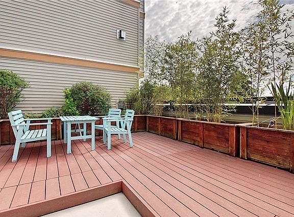 Immaculate condo w/ huge private deck in heart of Phinney Ridge! Walkscore of 88. Tons of natural light & privacy in this 1 bed / studio. Spacious living w/ gas fp is open to modern kitchen, flows to 200 sq ft deck! Private deck area has full eating space, multiple planters w/ bamboo, new trex surface! Large bath has W/D. Quiet 21 unit building w/ 360 degree view rooftop deck. Garage parking, storage. Walk to coffee, bars, restaurants, Greenlake, zoo, groceries. Truly unique condo & opportunity!