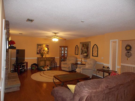 Salt water heated pool (13 X 24) with screened enclosure. Outdoor cooking area with sink. 3BR/2BA split bedroom plan, open greatroom to kitchen & dining area with hardwood floor and fireplace with gas logs. Completely remodeled kitchen Corian counter tops, custom cabinets with appliance center, lazy susan and stainless steel appliances. Large master bedroom with 2 walk-in closet. Custom master bath with granite counter tops and walk-in tile shower. Sunroom heated & cooled on backside of home(13X 35) Ceramic tile in foyer, hallway and baths. Carpet in bedrooms. 2 water heater (one is tankless). Wired 12 X 20 storage building. New vinyl windows. Privacy fenced backyard. Sprinkler system.