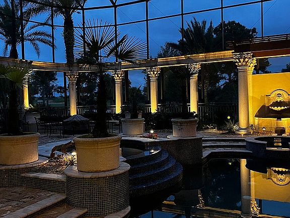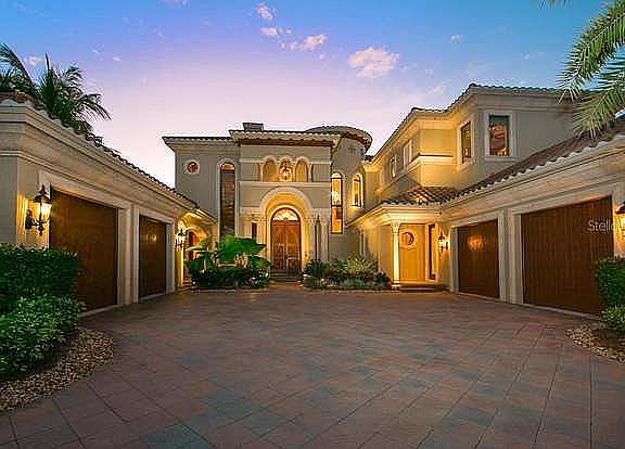 This is a home with the most elegant and refined architectural features imaginable. The Bellagio II, Arthur Rutenberg Former Model 4 bedroom, 5 full bath, 3½ bath home, located in Lakewood Ranch Country Club, sits majestically on over ½ acre of tropical paradise. In addition to the executive study with spiral staircase to sitting area, game room with wet bar w/ mini kitchen, fitness room with steam shower, master bedroom suite w/ sitting room and private courtyard, elevator and cedar wine cellar; you will delight in the expansive screened outdoor terraces with covered entertaining areas, outdoor kitchen w/ pizza oven, saltwater pool w/ new systems, gas fire pit, scenic golf course views, palatial fountains, exterior columns, heated and air conditioned four car garages. Additional enrichments include refinished stone flooring & counters, upgraded whole house generator, new central vacuum, new Wolf appliances, new Lutron auto shades, Pella impact windows, and new exterior paint. Control 4 home automation system for security, lighting, music and two HVAC 's added. You will be forever impacted by the hand crafted wood details, soaring custom ceilings, and exquisitely designed hand rails lining the staircases and expansive terraces. Enjoy sunsets from your serene outdoor space everynight. No detail has been overlooked in this magical masterpiece. This home is work of art and sure to leave you spellbound.