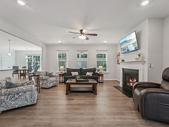 Cozy gas fireplaceFaces protected green spaceTiled walk-in showerFlexible spaceBreakfast nookOversized islandPrivate flat wooded lot