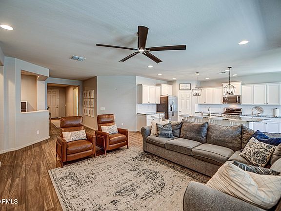 This home in the highly coveted Morrison Ranch community offers many impressive features. Boasting spacious interiors and an inviting atmosphere abundant in natural light, the open floor plan includes beautiful wood tile. The kitchen has granite countertops and a subway tile backsplash, and the Great Room's custom shiplap accent wall sets it apart. In the master suite you'll find a spacious bathroom and walk-in closet. Three additional bedrooms provide ample space for family and guests. With its landscaped front and backyards, this home offers a wonderful setting for social gatherings. It even has a three-car tandem garage! It's a prime location with easy freeway access near the fast-growing tech center, shopping malls close by, and outdoor fun just up the road. Don't miss this beauty!