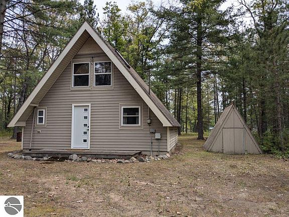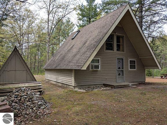 This quaint A-frame home offers a cozy retreat nestled right among Chain Lakes and surrounded by nature's beauty. The interior features a spacious-yet-intimate open living space with vaulted ceilings and a lofted bedroom. Recently remodeled bathroom on the main floor, with a kitchen that blends modern conveniences with a retro, rustic charm. Step outside to three spacious lots where you can unwind beneath the canopy of trees, host gatherings, or simply soak in the peaceful surroundings.