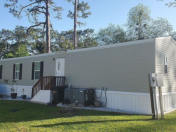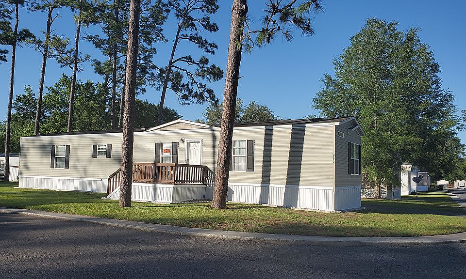 This well-maintained 3-bedroom, 2-bathroom, 16x72 Clayton home, is a perfect place to live. It has been a smoke free and pet free home. The master bedroom and bathroom is separated from the other 2 bedrooms by the kitchen and living room. The Master bathroom is spacious with a garden tub, walk-in shower and plenty of cabinet space. Kitchen contains ample cabinet space with pantry, as well as refrigerator, stove and dishwasher. Roof is in good condition. Appealing landscape boarder surrounds mobile home. Large front deck is perfect for sitting outside or plants. Located near Celebration Pointe and Butler Plaza in the Palms of Archer community with helpful staff who are family-friendly. Community has a pool, clubhouse, playground and basketball court.