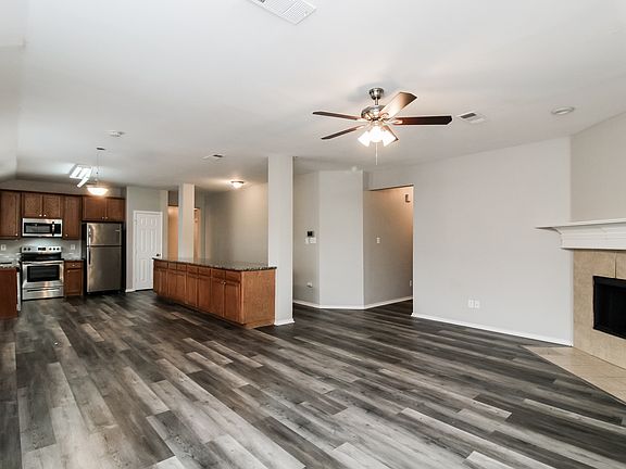 Great 4 bedroom 2 bathroom home with updated kitchen with a beautiful granite bar, stainless steel appliances and luxury vinyl plank flooring throughout the home. Primary bedroom is oversized with ensuite bathroom and walk in closet. Plenty of storage and open concept living! Fully fenced backyard with a 2 car garage! Pet friendly and easy to tour and apply!