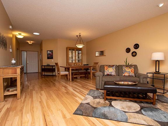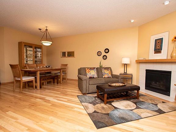 Super sharp one level townhome in excellent Lakeville location & popular Crossroads development. Great curb appeal with brick & stucco exterior. Warm/inviting/sunny interior with open/spacious layout. Beautiful HW floors throughout main level including hickory floors in living, dining & sun rooms. Cozy gas fireplace in LR. Sun room walks out to nice deck with retractable awning. Deck overlooks back yard/green space. Enameled kitchen with silestone countertops, tile backsplash, tons of cabinet space & room for a table. Convenient laundry/mud room off kitchen with extra storage. Main level also offers nice size master BR with walk-in closet & newly renovated master bath. Front bedroom makes a great main level office. Lookout lower level features good sized family room with bar area, private 3rd bedroom with walk-in closet & 3rd bath. Unfinished area of basement has large shop space & nice storage room. Custom workbench in garage. Very nice, move-in ready home!