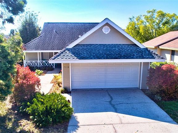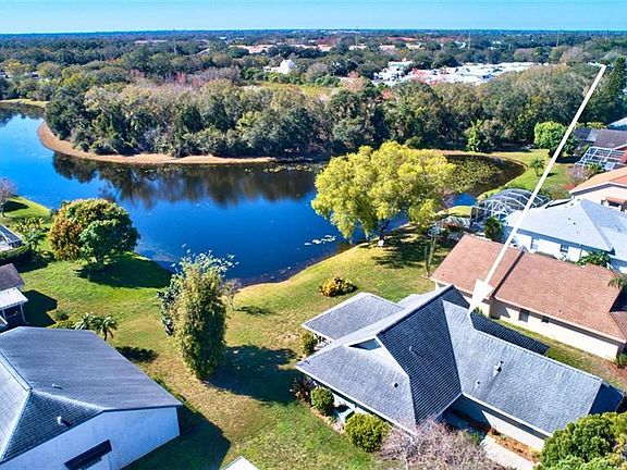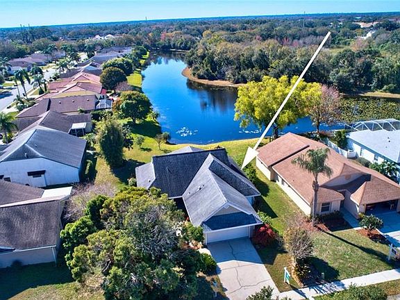 You're in luck! Buyer financing fell through so this beauty is inspected, appraised and back on market! Charming Waterview Bungalow w/ Key West Style Bermuda Hurricane Shutters on a Quiet Cul-De-Sac Road. Boasting Dbl Master Suites, 2 updated baths and 2 car garage - this home is the only one of its kind in the popular Creekwood Westbrook. Imagine yourself sitting on the front porch looking out over the secluded front gardens. Take in the long lake views that start at the front door & don't stop! An open concept living space w/ soaring ceilings and both Masters are situated to take in the serene water views, as is the screened lanai just past DBL French doors. Store your boat in a spacious garage w/ washer/dryer, laundry tub, organizers & workbench! Never worry about storage with XL closets in every room, extra walk-in storage closet inside & stair attic access. Cozy family room/kitchen combo space will bring folks together & is clean and bright w/ pantry, light cabinets, a window overlooking the front gardens & island for extra cooking space. Newer appliances are all included. Original owner took great pride in ownership & thoughtfully built for low maintenance, open gathering spaces, peaceful views w/ location near all that makes FL great-community pool, tennis, basketball & walking/biking paths! Walk or bike to local restaurants, shopping, parks. Quick drive to golfing, beaches & all of Tampa Bay along I-75/275! Your perfect Florida home, freshly painted exterior and ready for move-in! Welcome home!