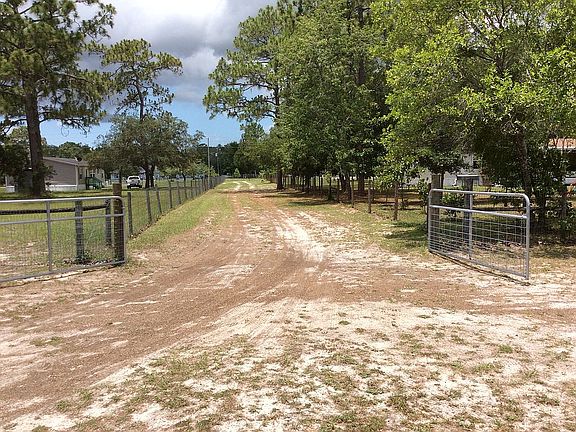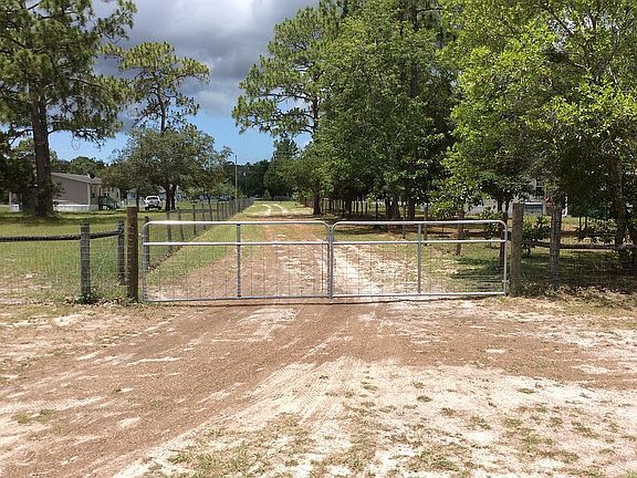 This is a unique 1,933 sq. ft. 3 bedroom 2 bath pool home with an attached 2 car garage (27'x20') on 2 1/2 completely fenced acres. The Hvac system, septic system, roof, gutters, ceiling fans, oven and hot water heater are a year old or less. Even the venetian blinds are new and cut to fit. There is a 38' x 40' pole barn. A 25' x 11' room over the barn is convenient to keep your storage items. There is a large kitchen (9 1/2' x 20') and a beautiful wood burning fireplace in the spacious living room. The master bedroom is large (19' x 13 1/2'). The attached bathroom and walk-in closet are spacious. This is a split bedroom plan. The second and third bedrooms are at the opposite side of the house along with another large bathroom. Additionally there is a study that can easily be converted to a 4th bedroom if needed. The washer and dryer stay with the property and are a year old too. Also staying is a zero turn Gravely 48" riding mower with attached wagon. There is an electrical outlet for your RV (30 amp) and an electrical outlet for a whole house generator (50 amp). Windows, electrical, and plumbing were also upgraded several years ago. The front porch looks out on the neighbor's pastures and horses frolicking about. There is no HOA or CDD. The house is about two miles from the Sunshine Parkway and from shopping. A commission of 2 1/2 percent will be offered. Please be pre-approved. By appointment only.