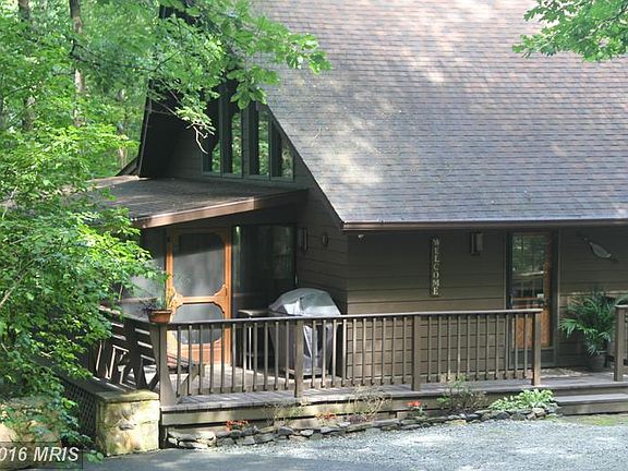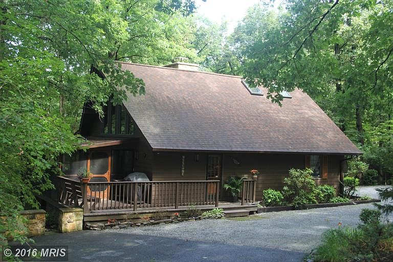 Paradise found! Boonsboro schools, abundant wild life, 4.6 wooded acres, Chalet-type 2 bedroom home, updated kitchen with granite counter tops and skylights, 2 story stone fireplace, lots of huge windows to view the gorgeous outside-- screened porch with hot tub, loft master BR/BA with jetted tub, 22x26 ft detached garage with 2nd floor storage..feel like you are on vacation all year round!