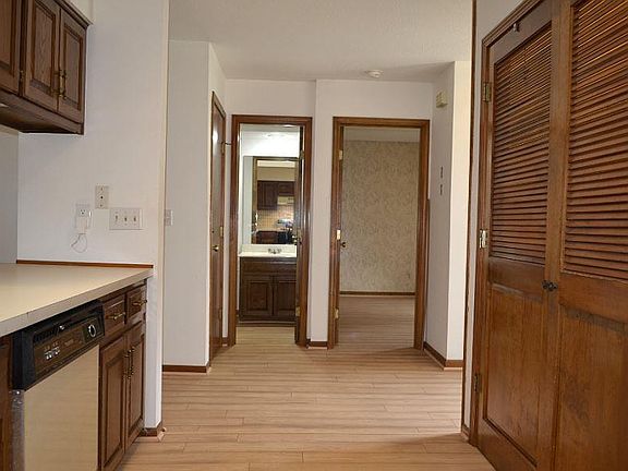 Great Gladstone location. Meadowlane Townhomes. Updates include: thermal windows, knock-down ceilings, high-rise toilets in both baths. Master bath has new cabinets & tile updating. Walk-in closet. Laminate flooring throughout. Kitchen needs updating. Refrigerator stays. Main floor laundry. Unfinished basement walks out.