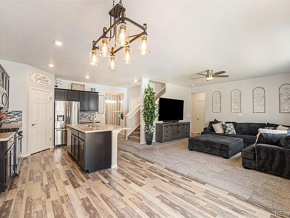 Welcome home to this 2-story home in Clark Ranch. This sought-after ‘Hayden A’ model offers an open floor plan with tons of natural light, perfect for creating a bright and welcoming space for the family to gather. The updated light fixtures, new interior paint, vinyl plank flooring and brand-new upgraded carpet and carpet pad create a fresh and modern look throughout the house. The kitchen features a stylish backsplash, center island with room for seating, and ample cabinetry make it a functional and attractive space for cooking and dining. The main floor office and bonus upstairs loft provide additional space for work, play, or relaxation. Retreat to your primary suite, complete with a 5-piece bath and huge walk-in closet. Two large secondary bedrooms, a full bath and laundry round out the upper level. Step outside to the newly installed colored concrete patio, perfect for entertaining and the kids will love playing on the ½ court basketball court. The mature trees, professional landscaping, and sprinkler system all add to the overall appeal of the backyard. An attached 2-car garage was recently finished with drywall, insulation, and paint, as well as epoxy flooring for a durable and clean finish. All appliances, including a smart home technology-enabled garage door, Google front door camera, ADT security system, and Wi-Fi enabled thermostat, are also included. With two parks within walking distance, this home is situated in a convenient and desirable location, perfect for families; book your showing today!