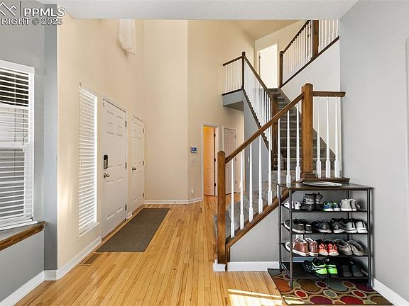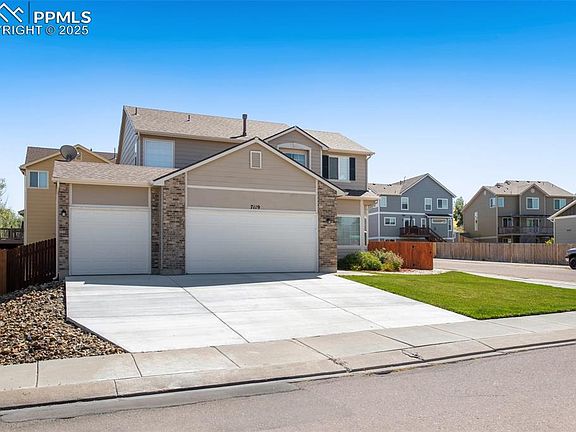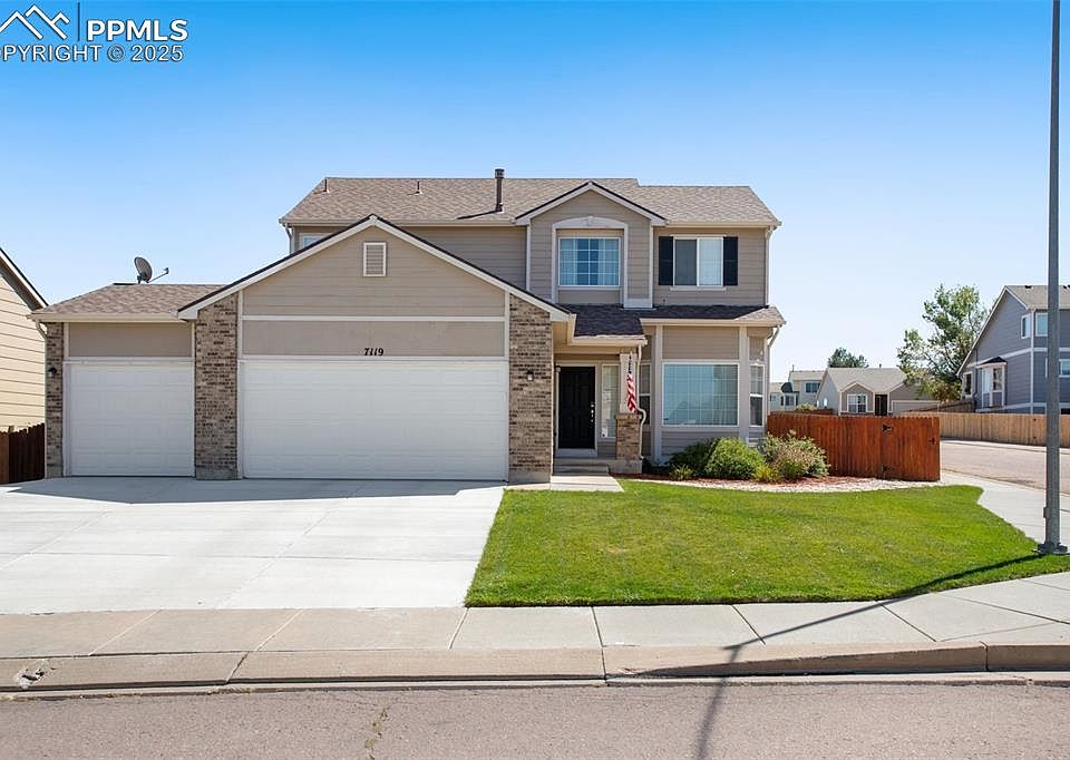 Welcome to this beautifully maintained 2-story home on a spacious corner lot in the desirable Fountain area! This home boasts solid hickory hardwood flooring throughout the main level, adding warmth and elegance. Natural light floods the front living room through a large bay window, highlighting the grand, open-to-second-story entryway. A bench with clever hidden storage completes the inviting living room. Step into the heart of the home— the dining room and beautifully equipped kitchen featuring updated appliances that make cooking a delight! This inviting space flows effortlessly into the warm and welcoming family room, where the glow of the gas fireplace creates the perfect ambiance for cozy evenings. The main level also features a versatile extra room, perfect as an office, craft room, or playroom. Stay cool during warm Colorado summers with central air conditioning, and appreciate the upper-level updates, including vinyl plank flooring in the master bedroom bedroom and master bathroom, as well as new vinyl tile in the upper laundry room. The unfinished basement offers endless possibilities—use it for storage, a home gym, or finish it to suit your needs. Outdoors, the fully landscaped corner lot features an automated sprinkler system, a deck, and a stone patio with a firepit, ideal for enjoying Colorado’s beautiful weather. The 3-car finished garage provides ample space for vehicles and storage. This home is conveniently located near shopping, dining, and outdoor activities. Just a few miles away, you’ll find Fountain Creek Regional Park with stunning mountain views, and Metcalf Park, which features volleyball courts, a skate park, and more. Don’t miss this opportunity to own a move-in-ready home with fantastic amenities in a prime location!