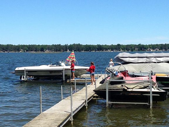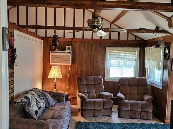 Fully furnished summer cottage looking for new family to enjoy along with shared lake lot with 120 foot dock for the boats, as well as a sandy beach area for play. All the major expenses have been completed on home, new steel roof home and garage 2 years, new siding/windows, well pump 3 years old. Association has 10 members/stock holders that can use at the very low cost of $300 per year which takes care of lake lot taxes and maintenance. Dock is only 2 years old so should be in good shape for a while yet.