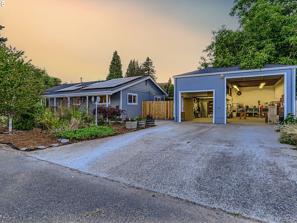 You’ll find the full package here: updated, airy house, established garden, and a rare oversized detached garage workshop! Situated in the heart of St Johns, it's the perfect combination for the enthusiast who wants all of this, plus the option to stroll to coffee & more. Beautiful, light-filled home has many upgrades, hardwood floors throughout, and vaulted ceilings with an ideal open floor plan!INCREDIBLE SHOP! If you own a trade business or need a large storage space or workshop, this is the property! Work on that project you’ve been dreaming of with space for equipment and supplies under extra-tall ceilings. 30A outlet is ready for your table saw or other power tools. 855 sqft SHOP with 234 sqft loft. Oversized 10.6 ‘ bay door fits a boat or camper. Versatile space also has potential to generate substantial income if rented. More than meets the eye, the home has vaulted ceilings, hardwood floors, a welcoming floorplan, and an abundance of light. Kitchen has granite counters, newer stainless steel appliances, and ample space for ambitious chefs. Adjacent vaulted dining room easily seats 8 with direct access to outside. Primary suite with attached tile bath. Two additional spacious bedrooms with double closets. Outside, enjoy years of thoughtful landscaping in this Backyard Habitat-certified yard: native plants, fruit trees (apricot, sour cherry, fig), herbs, and a thriving veg garden with drip irrigation ready for automation. Tomatoes and peppers are ripe and ready for you to enjoy!Energy-efficient upgrades: 6.29 kW solar system (2022; WiFi-enabled solar panels, transferable 1:1 net metering); Hybrid water heater (2018); 95% efficiency gas furnace (2019); Evolution A/C (2021); Milgard double-pane windowsThe sellers say it best: “We’ve cherished our time here: morning coffee with hummingbirds in the garden, evenings at the food carts, and annual block parties. This home has been our retreat, and we hope its next chapter brings more joy and inspiration." [Home Energy Score = 8. HES Report at https://rpt.greenbuildingregistry.com/hes/OR10238645]