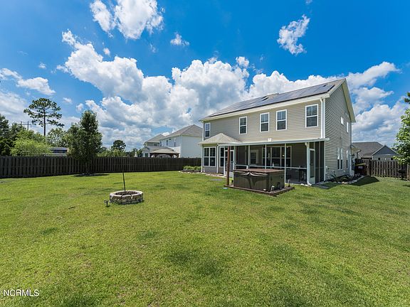 Imagine a life at the beach with MINIMAL energy cost. This expansive 3200 sq ft 4 bedroom 3 bath, well maintained, one owner home is located on a premium lot surrounded by protected woodlands in a family-friendly neighborhood within walking/biking distance to Ogden Park. Enjoy a low maintenance cost efficient lifestyle within 10 minutes of area beaches, shopping, medical facilities and downtown Wilmington. This home offers a new Trane HVAC system keeping the home cool in the summer heat and a family sized 11.84 LG Solar Panel System producing 17,275 kWh yearly with a 25 year transferrable warranty, saving thousands per year in energy costs. The solar system will be paid off at settlement by current owner. You can relax in the newly expanded 10'x21' fully screened patio, watch the sun set in the immaculately maintained 76''x76'' hardwired bromine hot tub or soothe your sun kissed skin in the newly remodeled Master On-Suite hand tiled walk-in rain shower. Feeling hungry after a long day at the beach? Whip up some magic in your bright and airy open concept kitchen with SS appliances, dark wood cabinets, double pantry and brand new GE oven and dishwasher. This home offers a fresh new beachy vibe with porcelain, interior paint, handcrafted hardwood stairs, upstairs bonus room and storage galore in every room. There's plenty of room for guests to visit too. Let guests relax in the downstairs secondary master with full bath. For those who love to tinker in the garage--you can do it with ease on the 1/2'' rubberized floor, complete with metal storage shelves, deep freezer and refrigerator with keg taps. Use up all the space in the garage with your gadgets, no problem. There's a 12'x8' raised shed in the backyard. Come take a peak at this pearl in the sand, live the beach life and enjoy Southern hospitality in Wilmington, North Carolina.