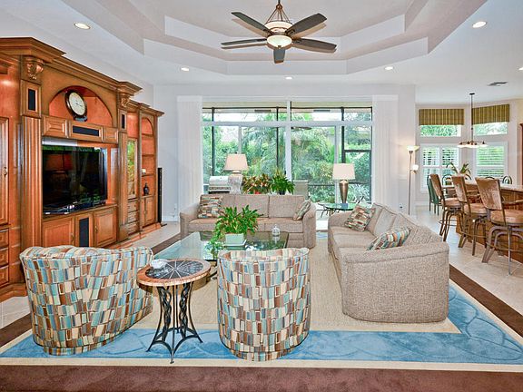 Magnificent Pamplona model on a private, oversized inside corner lot. This home is bright, spacious and features approximately $180,000+ in upgrades including 20x20 tile floors on the diagonal, custom built-in cabinetry, accordion storm shutters, a whole house generator, central vacuum system, built-in closet systems, true gourmet kitchen and so much more. Extensive landscaping improvements add beauty and privacy to the extended back patio. HOA Fee includes lawn care, alarm monitoring, phone, cable and internet. Please call for a full list of upgrades.