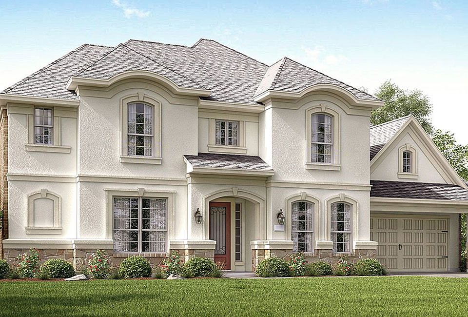 The grand two-story Bach plan by Village Builders features a welcoming foyer that opens to a lovely formal dining room, as well as a study with the options to add handsome ceiling beams and a built-in bookcase. The stunning gourmet kitchen features a uniquely shaped center island with a spacious walk-in pantry. An adjoining breakfast room offers access to the rear patio and features the option to add a handy built-in hutch. The generous family room features a corner fireplace and the option to add beautiful built-in shelving. This four bedroom home's first floor master suite includes a sitting area with the option to add a cozy three-way fireplace, and offers access to a spacious en suite master bathroom with dual sinks, private toilet enclosure, separate shower and tub, and an oversized walk-in master closet. The second floor features three secondary bedrooms with walk-in closets, two full bathrooms, and a large game room that features unique built-in window seating. The Bach floor plan also features the option to add an outdoor grilling area.