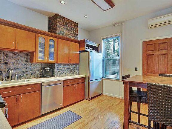 **HALF BROKER FEED PAID BY OWNER**Commuter's Dream and desired location! Welcome to this one of kind 2 family home located on the first floor. This 3 Bedroom and 1 Full Bath, will sure to please. Updated kitchen has all brand new Whirlpool Appliances, place for a dining table and access to the amazing shared backyard making it perfect for entertaining inside or outside for BBQ's. Master bedroom has a beautiful bay window with south facing views allowing for natural light all day and two good size bedrooms. Also included, is 1 car parking in the driveway and access to the W/D room located right inside the unit. Across the street is an open field with no obstruction, newly paved sidewalks and trees. Easy access to NYC, Hoboken, and Jersey City with public transportation right on the corner. Don't miss out!