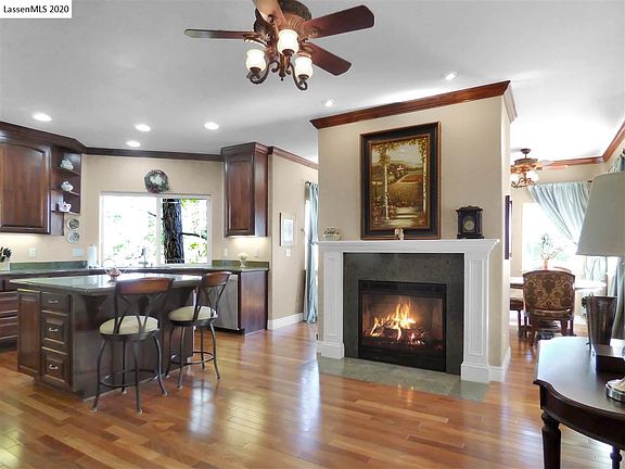 The ultimate in opulence! 3 Bdrm., 2 1/2 bath, 2,898 sq. ft., on 5.93 acres of natural beauty. One of a kind home with plenty of privacy. Enter the main level of the home and you will find a grand kitchen with deep, rich, wood cabinets, granite counters, a chef inspired gas range, a side by side refrigerator and a wine refrigerator tucked into the breakfast bar/center island. The luxurious teak wood floors, crown molding and high end fixtures provide the finishing touches that make this home stand out. The open kitchen and living room wrap around to a built in bar and dining area, creating the perfect space for entertaining. The gas fireplace creates a relaxing atmosphere, inviting you to curl up and gaze out at the views. The master suite is decadent with it's awesome coffee bar nook, dual head tiled shower, soaking tub and double sinks. The den/library will impress the studious family member or would make the perfect home office. Guests will feel complete relaxation in the private guest suite with its own wet bar. Each level has a walk out deck or patio, a wet bar and views. Outside you can soak in the hot tub or watch the deer graze. Keeping a comfortable temperature is a breeze with dual air conditioning. The siding is fire resistant, the generator will power all but the washer and dryer, the gas stub for the BBQ on the kitchen level deck is a plus. The finished garage is perfect for vehicles and storage. The John Deere tractor with many implements is negotiable.