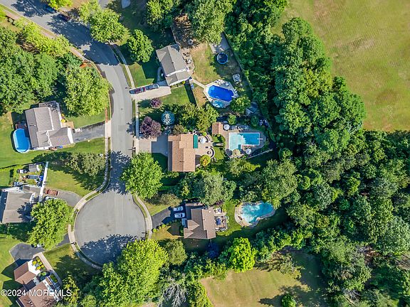 Coming Soon -no showings until Sunday, June 30, 2024. Stunning 4 bedroom, 3.5 bath Colonial is nestled at the end of a tranquil cul-de-sac in Herbertsville section of Brick. First floor has hardwood flooring, updated kitchen w/ granite countertops, stainless appliances, & spacious family room with a wood-burning fireplace, formal dining room and living room.. Upper level boasts 4 generous BR's, w/ primary suite w/ full bath and walk-in closet. Finished basement adds extra living space with a new full bath. Step outside to nearly half acre of picturesque property featuring hardscaped patio, 2 fire pits, natural gas tiki torches, professional landscaping, and an oversized heated pool with outdoor lighting. The pool house/cabana with half bath, makes entertaining a breeze. 2 blocks to the Brick Reservoir. Close to beach and all major highways