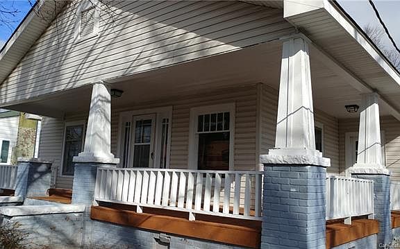 Lots of square footage in this home. Currently set up as a 4 bedroom home with 2 baths. Vinyl sided home with a partial basement, two replacement windows, wrap-around front porch. 2 non-functioning fireplaces, chain link fence, driveway. Kitchen and Living Room are a very large area, separated by the kitchen bar.