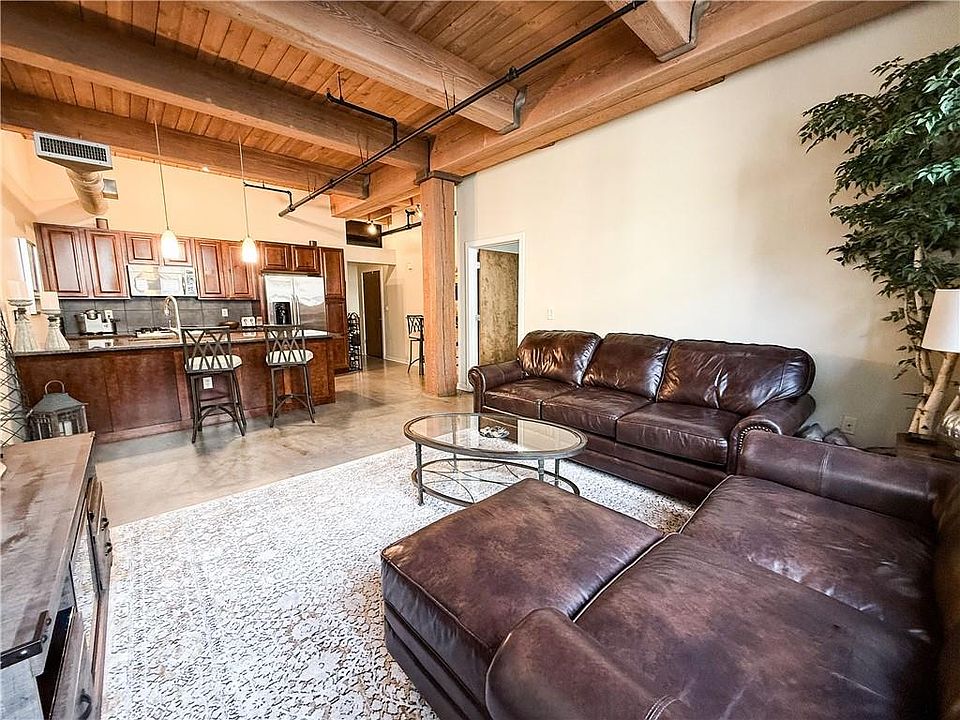 Luxury Loft Living in the Heart of Historic Downtown Kansas City - THE FOUNTAINS CONDOMINIUMS! Welcome to sophisticated urban living in one of downtown KC's premier historic buildings—thoughtfully renovated in 2017 to combine classic charm w/modern luxury. This exclusive residence is part of a boutique 45-unit building offering upscale amenities, secure access, & 2 elevators for your convenience. Step inside this spacious 2-bedroom, 2 full bath LOFT w/office & experience high-end industrial elegance at its finest. Designer details include exposed brick accent walls (incl Coca Cola brand still on the exposed brick walls), polished concrete floors, & soaring ceilings that frame an open-concept living & dining space—ideal for entertaining or relaxing in style. The chef’s kitchen features gas range & sleek finishes that create a cozy ambiance year-round. The primary suite is a private retreat complete w/double vanity bath, walk-in closet, & in-unit washer/dryer (ventless) for ultimate convenience. HOA fees include your water, sewer, trash, gas & bldg insurance. Electricity is the only utility that you would be responsible for. Google is available & you would only need to provide content insurance for your unit. Additional highlights include: Covered parking available for lease directly across the courtyard. Fitness center, private theatre room, lounge/clubhouse w/ darts, pool table, large television & social seating areas. Secure personal storage unit (3’ x 7’) included. This property has a quiet park as its front yard to enjoy or evening night. A five minute walk will get you to various restaurants, 2 KC jazz bars, The River Market and so much more... Hop on the Street Car on Main giving you access to the full length of Main St from Riverfront, Power & Light, Crossroads, Union Station, West Port, The Plaza and UMKC. This is your rare opportunity to own a piece of KC's rich architectural history while enjoying all the perks of modern downtown living.
