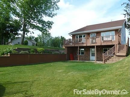 110 ft of lake frontage Storage shed and an attached garage. on Bullhead Lake. A private and relaxing experience awaits you on the dock of this no wake, 67 acre lake. Main floor laundry and master bedroom. Open concept living and kitchen. Two additional bedrooms, a half bath with dual entry. Walk in attic storage. Lower level features a wet bar, large rec room and walk out to the lake.