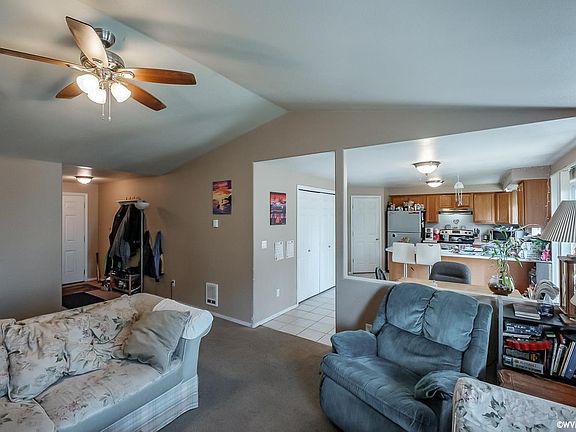 Perfect Starter Home! Located off the beaten path with a private shared driveway. This 3 bedroom, 2 full bath home boasts a spacious and open concept floor plan with an eat-in kitchen bar, vaulted ceilings, large master bedroom with en-suite, 2 car garage and a private fully fenced back yard. Personalize your space with a few quick and easy cosmetic touches and earn instant equity to boot. Great location within short distance to schools, shopping, businesses and easy commute to I-5.
