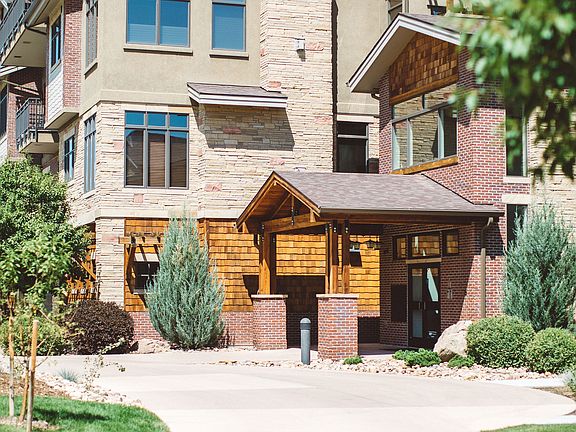 Luxurious 2nd floor corner unit w/natural light & feat. a Horsetooth view, open floorplan, & custom finishes throughout. Family rm feat. stone fireplace, chef's kitchen w/generous island, stainless appliances, bev. fridge, ample dining area, lg study, guest bath & spacious laundry rm. Master suite feat. att 5 pc. bath & generous walk-in closet & the sec. bdrm retreat is equally appointed. Lg priv. storage rm & 2 enclosed prkg spaces in building, priv. shared patio, bldg maintenance & security.