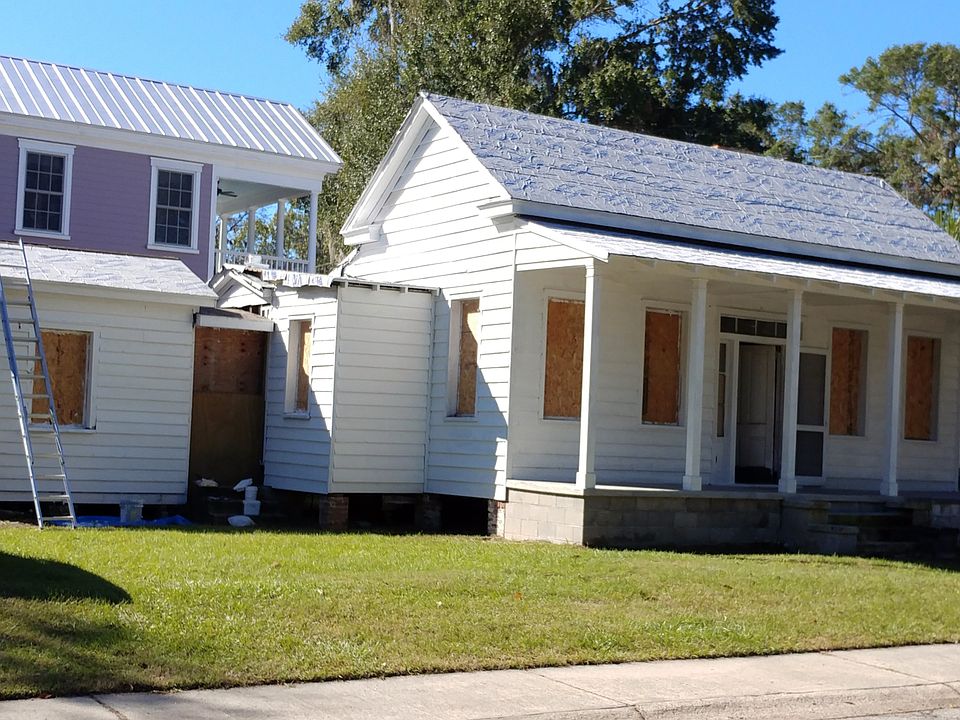 This single-story house was originally constructed in 1886 and is located in the Historic Commons area. It is also close to the University of South Carolina at Beaufort and within walking distance of restaurants, shops and Riverfront Park. View of the River from the front porch. The house is on the City of Beaufort's at risk properties list and identified as being historically significant and worthy of preservation. House is being sold "As Is" ($210,000.00) or build to suite (to be negotiated). Heart pine wall and roof framing, heart pine floors and two working brick fireplaces with the original mantles. Rough-sawn heart pine siding is in excellent condition. 10' ceilings in living areas. Property is large enough for the addition of a garage with apartment. Rendering and floor plan represent one of many possible renovation options. If desired, Seller can provide design and construction services.