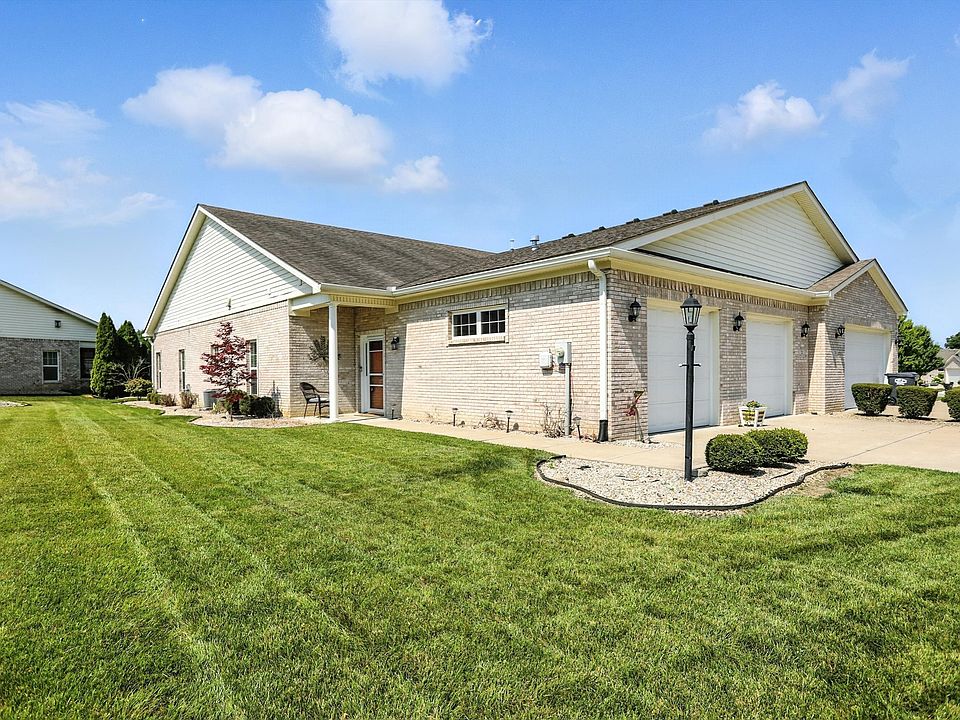Welcome to this stunning 2-bedroom, 2-bath patio home located in the heart of Center Grove, within the highly sought-after Shepherds Grove community. Perfectly situated on an oversized lot with an additional side yard, this home offers upscale finishes, spacious living, and low-maintenance ease. Inside, you'll find gleaming hardwood floors, plantation shutters, and an open-concept design that's both inviting and functional. The huge kitchen boasts granite countertops, stainless steel appliances, a large center island, and an abundance of cabinetry-perfect for entertaining or everyday living. Enjoy meals in the formal dining room,and unwind in the cozy living area or on the covered back patio, ideal for quiet mornings or evening relaxation. The laundry room features a utility sink and extensive cabinetry, while the heated garage includes a convenient mud sink and plenty of storage space. Both bedrooms are generously sized, and the two full baths are thoughtfully designed with comfort in mind. This home truly combines elegance and practicality in a premier setting. Don't miss your chance to live in one of Center Grove's most desirable communities-schedule your tour today!