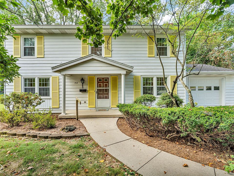 Beautifully maintained 4-bedroom, 2.5-bath 2-story Colonial, ideally situated in one of Greencastle's most desirable neighborhoods. Just a short distance from the charm of historic downtown and the vibrant DePauw University campus, this one-owner home offers space, comfort, and opportunity. The main level welcomes you with a spacious formal living room and a large family room featuring a cozy wood-burning limestone fireplace and sliding glass doors that lead to the expansive backyard patio-perfect for entertaining or relaxing in the shade of mature trees. The formal dining room flows into an eat-in kitchen with all-new stainless steel appliances, solid hardwood cabinetry, and a pantry with custom pull-out drawers, offering both function and style. A convenient half bath completes the first floor. Upstairs, you'll find four generously sized bedrooms with good closet space and two full bathrooms. The primary suite boasts a walk-in closet, updated double-sink vanity, and a recently renovated en-suite bath featuring a walk-in tiled shower. The full unfinished basement provides excellent dry storage, along with a newer front-load washer and dryer, water softener, and dehumidifier-all included. Additional highlights include hardwood floors beneath the carpet, new vinyl windows throughout, and an attached 1-car garage with a concrete driveway. Step outside to enjoy the private, shaded backyard, filled with mature trees and perennial gardens-a peaceful oasis that's perfect for outdoor gatherings or quiet evenings. With all the major items already completed, this home is the perfect canvas for your personal cosmetic touches. Immediate possession possible. Don't miss the chance to own this well-cared-for gem in a location that truly has it all.