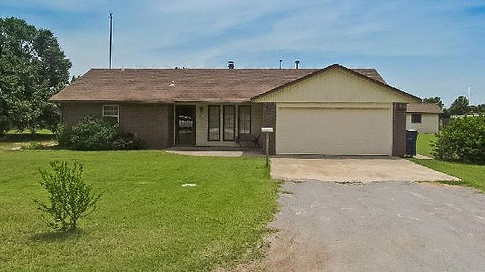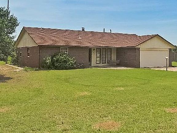Rare opportunity to purchase a nice brick home in a quiet secluded neighborhood in Ringwood. Home sits on 1/2 acres. 3 bed, 1 3/4 bath, living, kitchen, dining, utility, fireplace, 2 car garage, covered rear patio, 8' x 16' shop with 8' lean-to, two large apricot trees. Central heat and air.