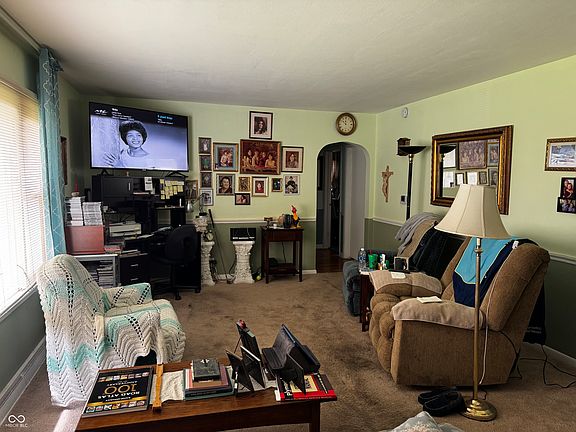 Charming 3BR/1BA Ranch in Greenfield-Central Schools! This well-maintained home offers a 2-car attached garage plus a heated 2-car detached garage with 12" insulation-perfect for a workshop or additional storage. Open kitchen flows into dining area. All bedrooms include ceiling fans with lights. Spacious sunroom overlooks a large, fully fenced backyard on a .45-acre lot. Recent updates include roof and furnace. Prime location-walking distance to hospital, pharmacy, park, and more. Home is located in a floodplain.