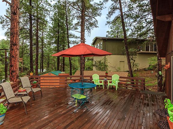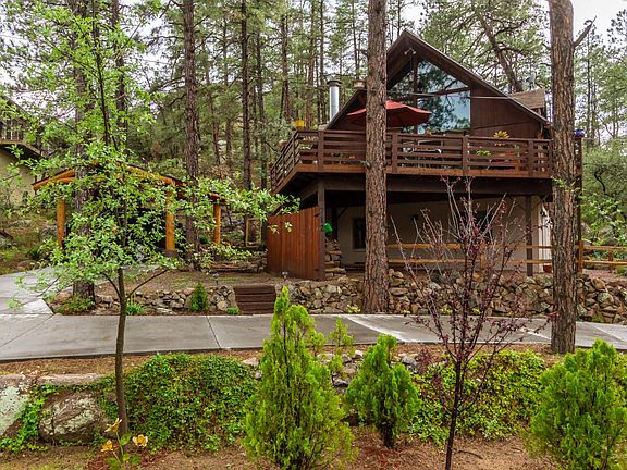 Truly One of Prescott's Best A Framed Cabin's Inside/Out in the Tall Pines 1.5 Miles from the Square. The Great Room Boasts a Rustic Knotty Pine Ceiling w/Cozy Wood Burning New-Rock Fireplace & Custom Wood Mantle, Upgraded Wood Flooring, SS Appliances, Cherry Cabinets, Granite Counters w/Stunning All Day Views Looking Out the Spacious 544 Sq.Ft. Front Deck Perfect for BBQ's & Entertaining. 2 Master Bedroom's - Lower Master Was Completely Remodeled w/Double Vanity, New Bathroom Tub/Shower & Plumbing Fixtures w/Travertine Flooring, Deep Walk in Closet & Walk Out French Doors to Side Patio. RV Parking on N Side, New 10x11 Storage Shed & New Custom Log 1 Car Carport w/Gorgeous Fenced in Flower & Vegetable Gardens You'll Totally Fall in Love With!