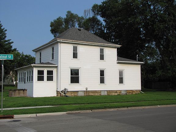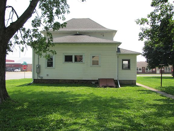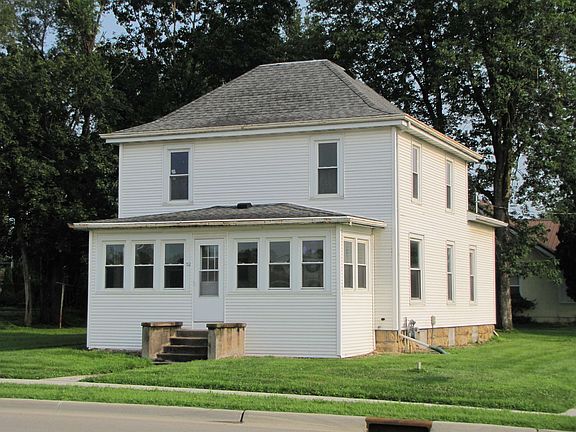 Two story house offering possibility of 5 bedrooms, 2 on main level and 3 on upper level. Nice size living room a small dining room area with a built in small curio cabinet. Spacious eat-in kitchen with wood cabinets. Convenient laundry in the main floor bathroom Front enclosed porch with lots of windows. Side entry porch and a full basement. Owner is a licensed real estate agent in Iowa and has never lived at this property. Property has been a rental. Property is Zoned R-2