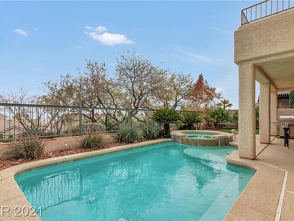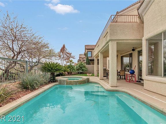 5BEAUTIFUL HOMEON ONE OF A KIND LOTS IN GATED SUMMERLIN COMMUNITY. HOME BACKS TO WALKING TRAIL/GREENBELT. GORGEOUS STRIP VIEWS FROM UPSTAIRS OVERSIZED BALCONY AND LOFT. PRIMARY BEDROOM IS DOWNSTAIRS WITH A FABULOUS SPA LIKE BATH. 2 FAMILY ROOMS ONE UP AND ONE DOWN, MAJESTIC VAULTED CEILINGS IN MAIN FAMILY ROOM WITH OPEN CONCEPT! GOURMET KITCHEN WITH OVERSIZED GRANITE ISLAND, BREAKFAST BAR. LOTS OF CABINETS AND COUNTER SPACE. WOOD FLOORING THROUGH MOST OF HOUSE. cERAMIC TILE IN REST OF HOUSE. POOL AND SPA ANC COVERED PATIO COMPLETE THIS FABULOUS HOME. 3 CAR GARAGE WITH DIRECT ACCESS INTO HOME AND SO MUCH MORE. NICELY LANDSCAPED FRONT AND BACK YARD.