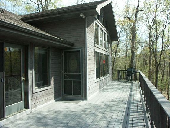 Private Nature Retreat, Home sits on 3 A lake front, gentle slope to the water. Lots of natural landscaping, mature trees, trail to water. Deck & screened porch that spans the back of home to take in views of water & Ozark Country side. The home has recently been painted interior, new carpet, updated bathrooms (master/guest/1/2 bath) new front composite deck, new hvac & some lighting. The home has a modern flare w/ rustic touches. The focal point of home is the Great Room w/ floor to ceiling windows bring nature in-doors, open dining & kitchen w/ SS appliances, hardwood floors, new carpet, updated bathrooms, the master suite is massive w/ en-suite bathroom & walk-in closet/washer/dryer, Main Guest w/ ensuite, 2nd bedroom Upper w/ loft area, & unique LL office w/ 1/2 bat. Boat slip leased
