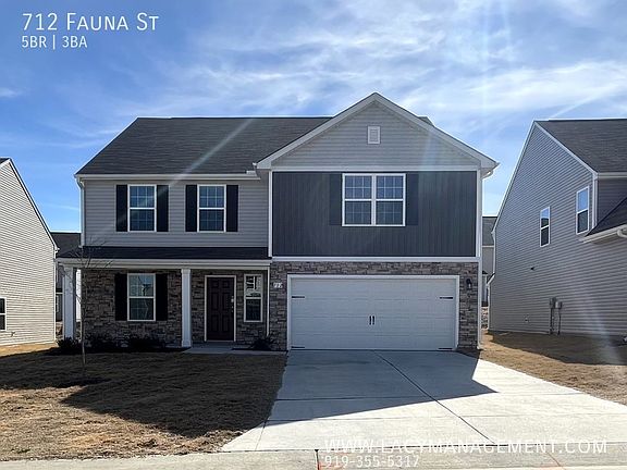 This 2805 square foot single family home has 5 bedrooms and 2.5 bathrooms. This home is located at 712 Fauna St, Zebulon, NC 27597.